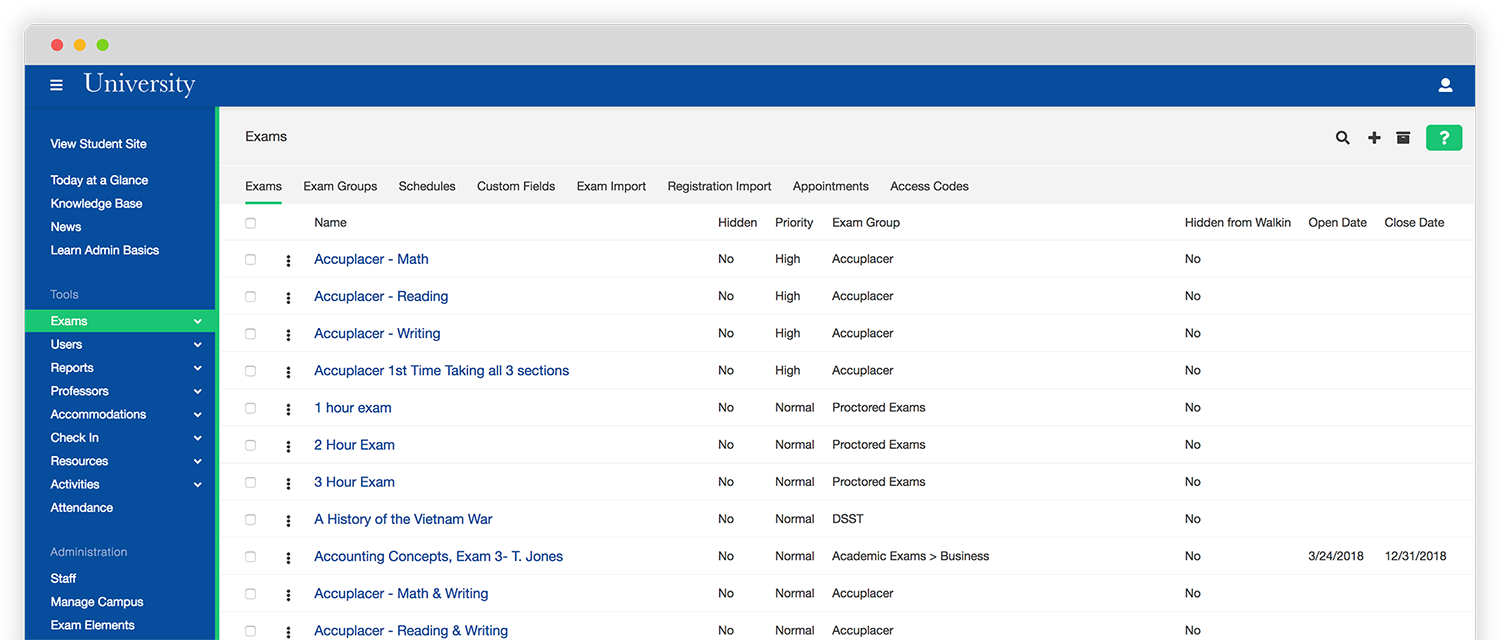 Explore ExamsSet up a check-in kiosk complete with a manageable roster, administration tools, and custom surveys during check-out.